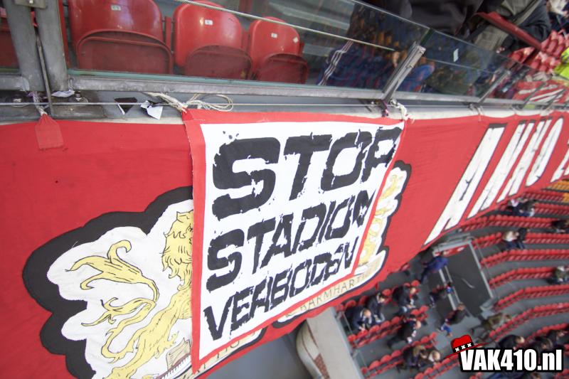 Zo'n 600 Utrecht supporters zijn onderweg braaf geweest en mogen plaatsnemen in het uitvak. Vocaal stelt het echter niet veel voor.
