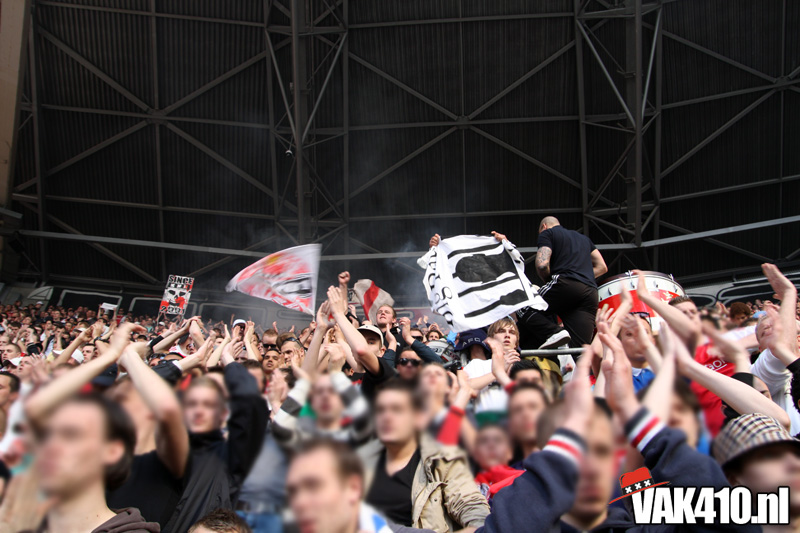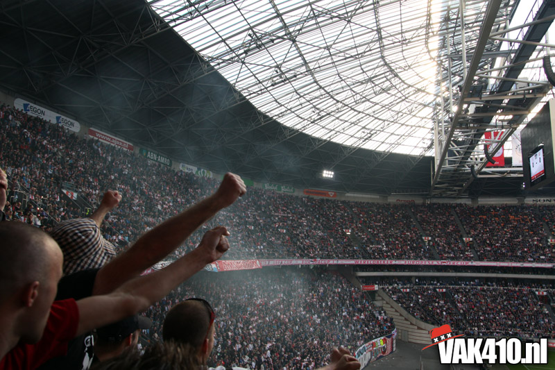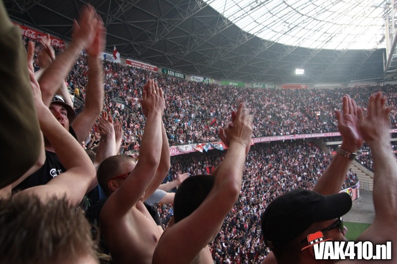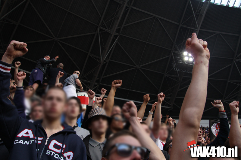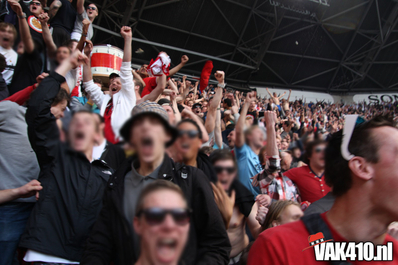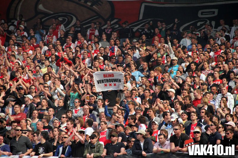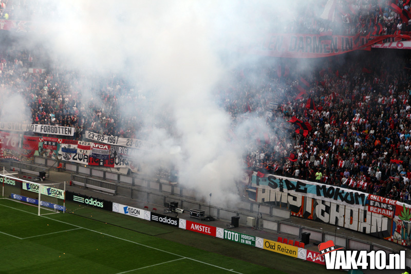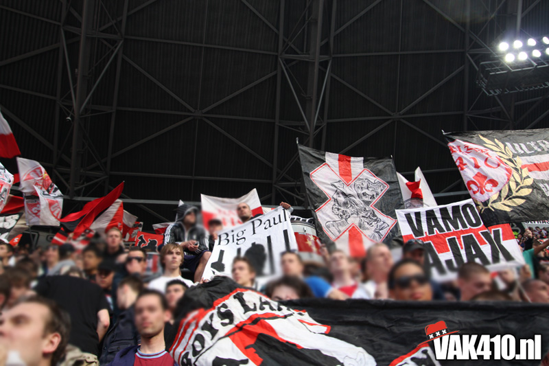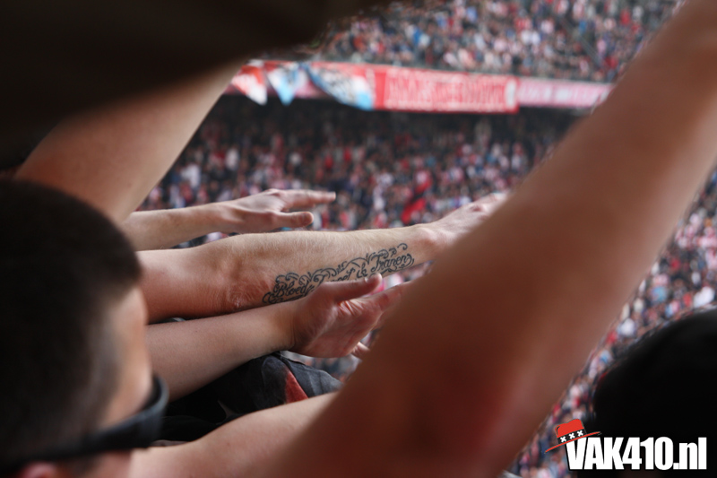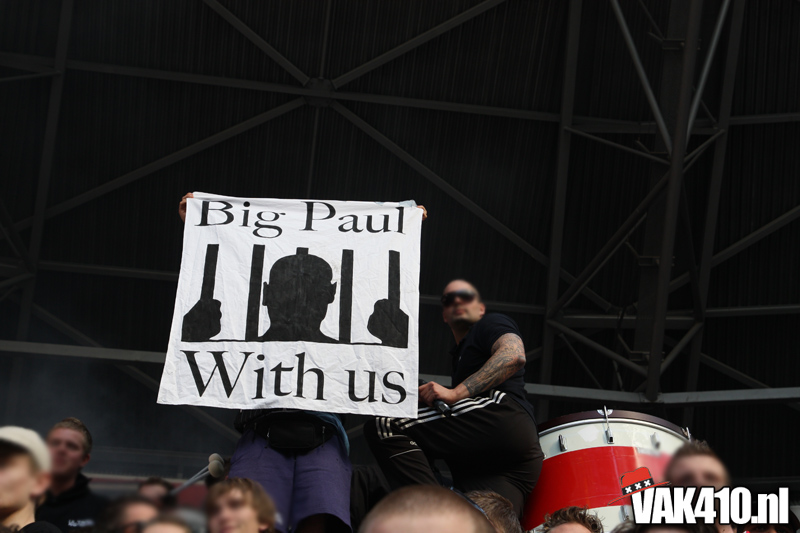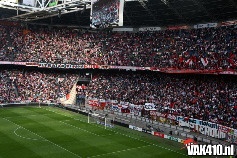 De magie van het doek werd overgebracht naar het veld en de Amsterdamse Zuid tribune. De Mokumse leeuw kwam in een ieder naar boven. De tribunes klokte, het stadion was 1. Er kon op de tribune en het veld dan ook niet meer verloren worden.