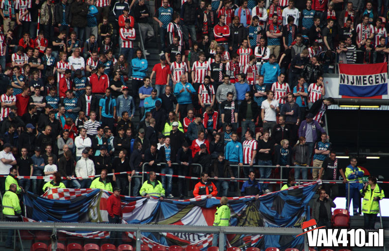 Temeer de tegenstander, geen tegenstander was. Het uitvak was voor deze topper niet uitverkocht. PSV wilde slechts 1.200 kaarten afnemen uit respect naar Ajax omdat zij slechts 1.200 man kunnen meenemen. En dan hebben we het nog niet eens over de Eindhovense stewards die er zorg voor moeten dragen dat het megadoek wel goed over de koppies gaat. Nee, dan win je het niet in Amsterdam...