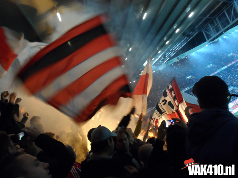 Het was duidelijk te zien dat Frankie in de rust de selectie op een flinke donderpreek had getrakteerd, want de 2e helft was weer veel meer des Ajax. Het uitvak was de 2e helft vocaal misschien nog wel van een nog hoger niveau dan de 1e helft en knalde overal overheen. De dale na de verdiende gelijkmaker was wederom oorverdovend.
