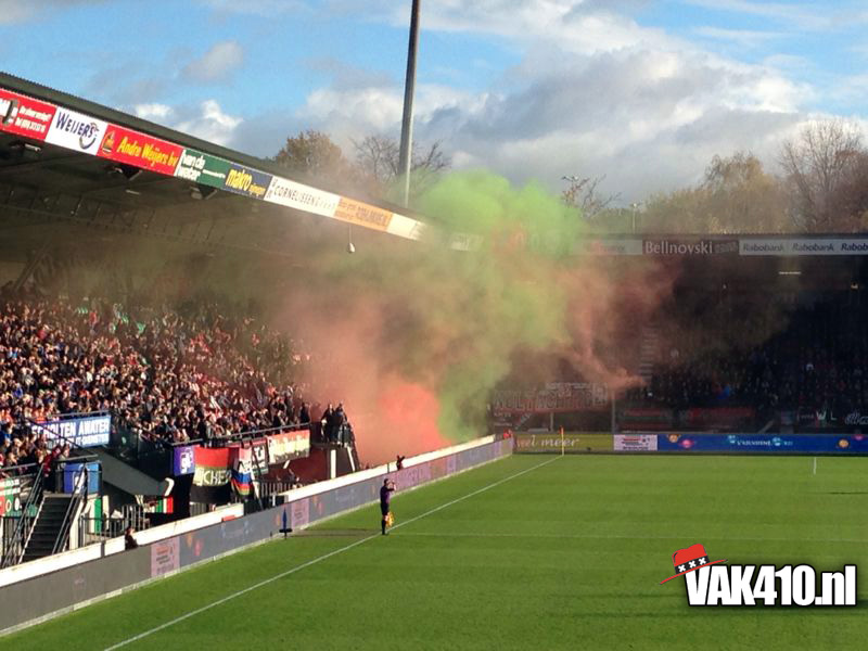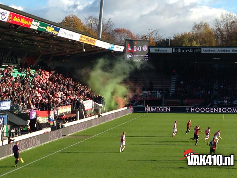 Bij de aftrap van de wedstrijd bleven de vakken van de fanatieke NEC aanhang leeg. Dit naar aanleiding van de bericht van de burgermeester dat een NEC-cafe voor 1 jaar wil sluiten wegens ongeregeldheden eerder dit seizoen. Na een minuut werden een flink aantal rode en groene rookpotten afgestoken en de tribunes stroomden vol. En toen bleef het stil.