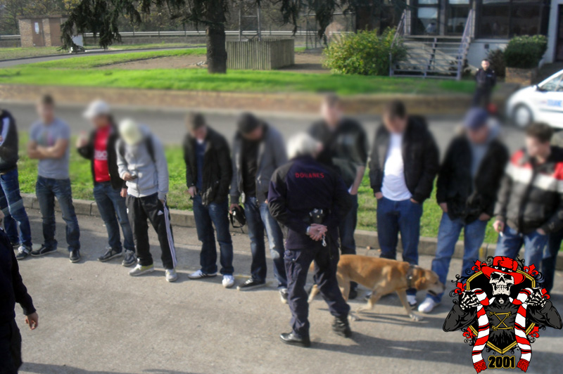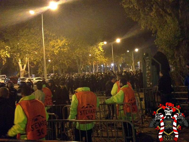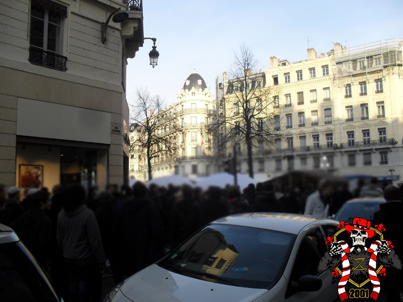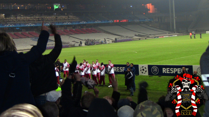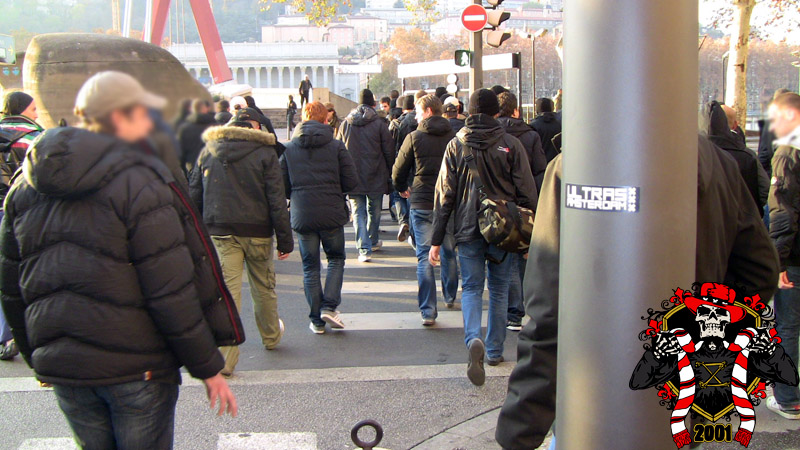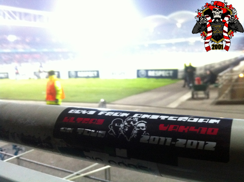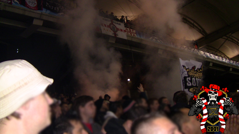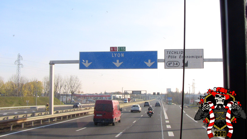 Het begin van een onvergetelijk dag in Lyon. Waar een aardige groep pas na de aftrap het stadion betrad. De oorzaak zat hem in het feit dat er op een paar 100 meter van de middenstip nog een wedstrijd werd gespeeld, waar Ajax wel de volle 3 punten pakte.