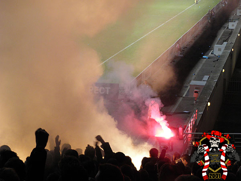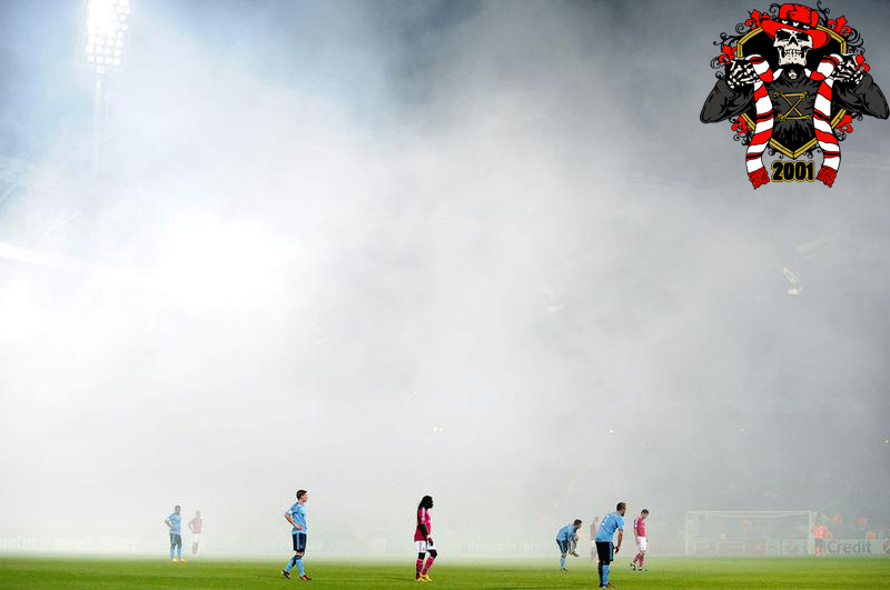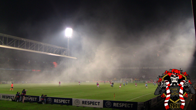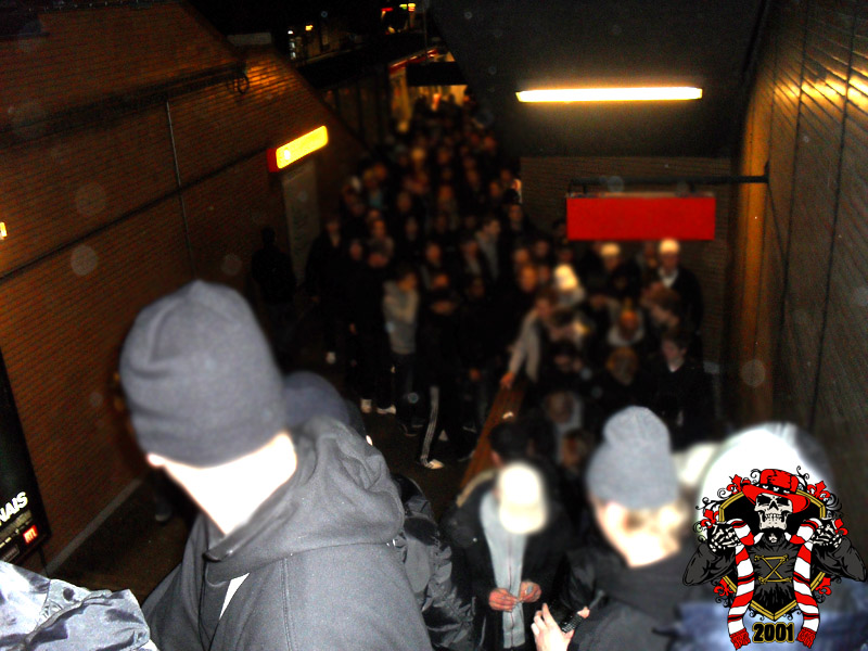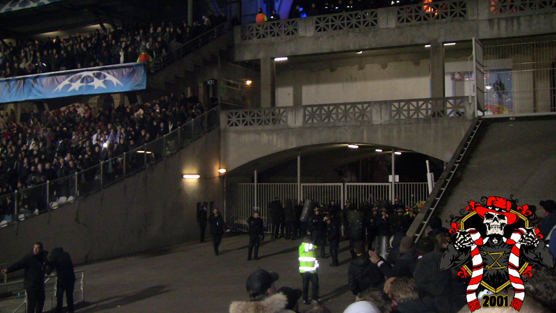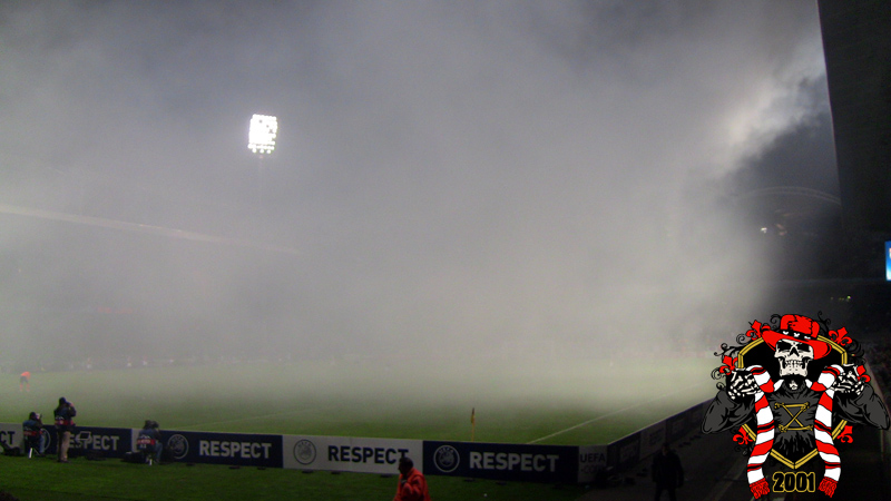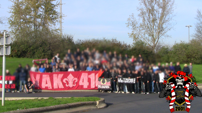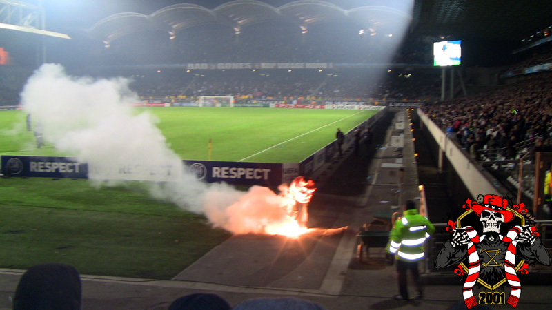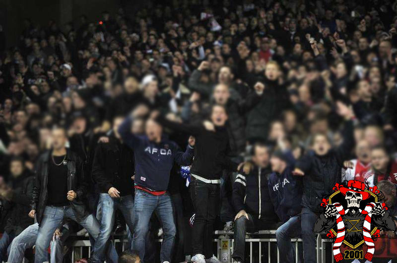 Het begin van een onvergetelijk dag in Lyon. Waar een aardige groep pas na de aftrap het stadion betrad. De oorzaak zat hem in het feit dat er op een paar 100 meter van de middenstip nog een wedstrijd werd gespeeld, waar Ajax wel de volle 3 punten pakte.