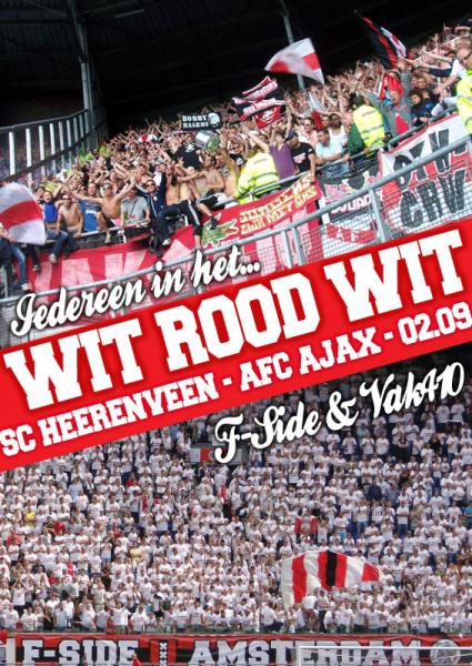 Kom allen, maar dan ook ALLEN, in het trotse wit-rood-witte Ajax shirt. Zeg het tegen al je gappies die meereizen naar het noorden. Laat Heerenveen weten dat Ajax present is, zowel vocaal als visueel! Het uitvak zal WIT ROOD WIT sieren.