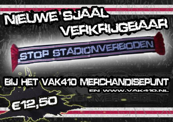 Naar aanleiding van het grote aantal stadionverboden dat continu wordt uitgedeeld door de Knvb en de smeris, hebben we een nieuwe sjaal ontworpen. Met de volledige opbrengst van de verkoop van deze sjaal, zullen we jongens met een stadionverbod en boete proberen voor een gedeelte financieel te steunen. En dan gaat het niet alleen om stadionverboden van de veel besproken bekerfinale, nee een verbod en boete krijg je tegenwoordig vaak al voor de kleinste dingen. Een betoog over terecht of onterecht, gaan we niet voeren. Het enige wat wij willen, is dat wij met z’n allen de jongens kunnen steunen die buiten staan. Dat begint met de opbrengst van deze sjaal, welke netjes word verdeeld. Maar ook met de boodschap die de sjaal draagt, laten wij zien dat zij ook buiten onderdeel blijven van de groep!
