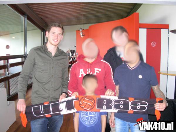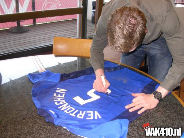 Vrijdagmiddag hebben een aantal jongens een middag doorgebracht met Jan Vertonghen op de Toekomst. Na binnenkomst op de Toekomst komt al snel de wedstrijd in Manchester ter sprake. Gevraagd naar wat Jan heeft meegekregen van de sfeer op Old Trafford antwoordt hij “vet vakkie jongen!” In de spelersgroep hebben we het ook gehad over de sfeer in het uitvak. Iedereen vond het geweldig, ook hoe dat vak een groot stadion het zwijgen heeft opgelegd. Ook toen we met 3-0 achterstonden in Madrid, bleef het uitvak doorgaan.