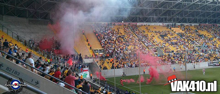 Wanneer er in de zomerstop het bericht komt dat Ajax is uitgenodigd op het 60 jarige bestaansfeestje van Dynamo Dresden, hebben wij al snel een bus vol voor deze trip. Een oefenmatch in Duitsland is altijd lekker. Ajax weigert aan ons kaarten te verkopen, zij menen dat Dynamo Dresden een geweldadige (racistische) reputatie heeft.