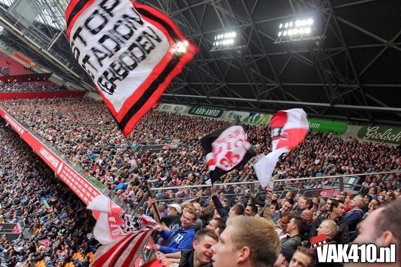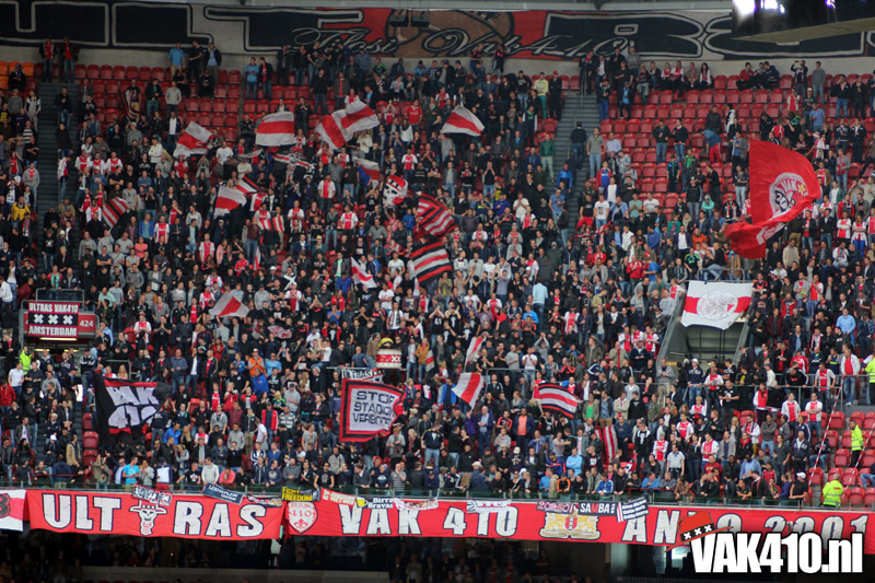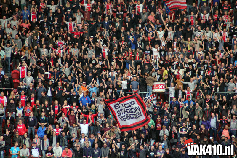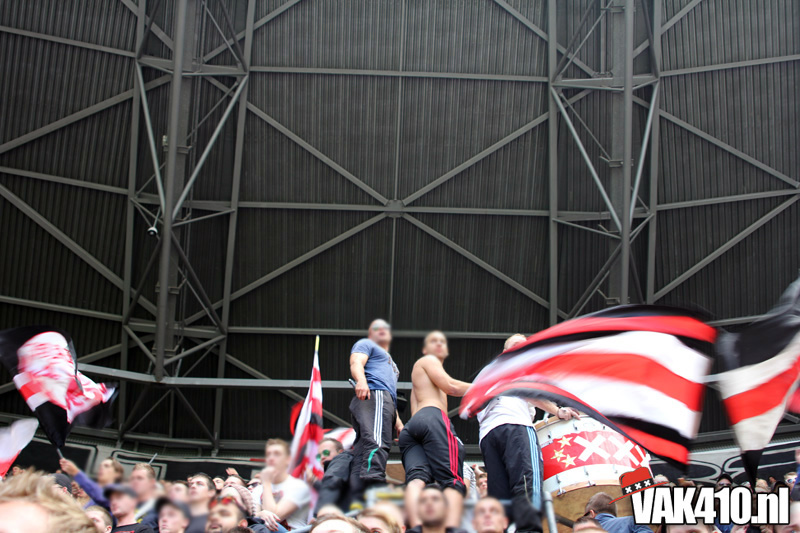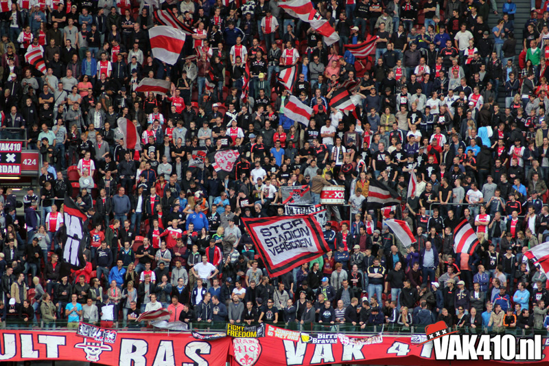 Ook het uitvak brengt amper roering in het stadion. Uiteraard goed dat Utrecht wel de kans krijgt om met een vol uitvak en bussen naar Amsterdam te komen! Zonde dat Utrechtsupporters dit dan nalaten, slechts een kleine 300man reist er mee naar de ‘wedstrijd van het jaar’.