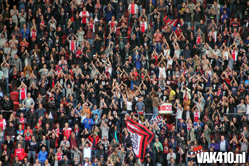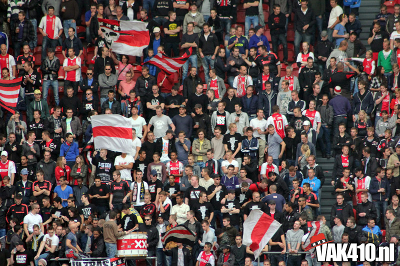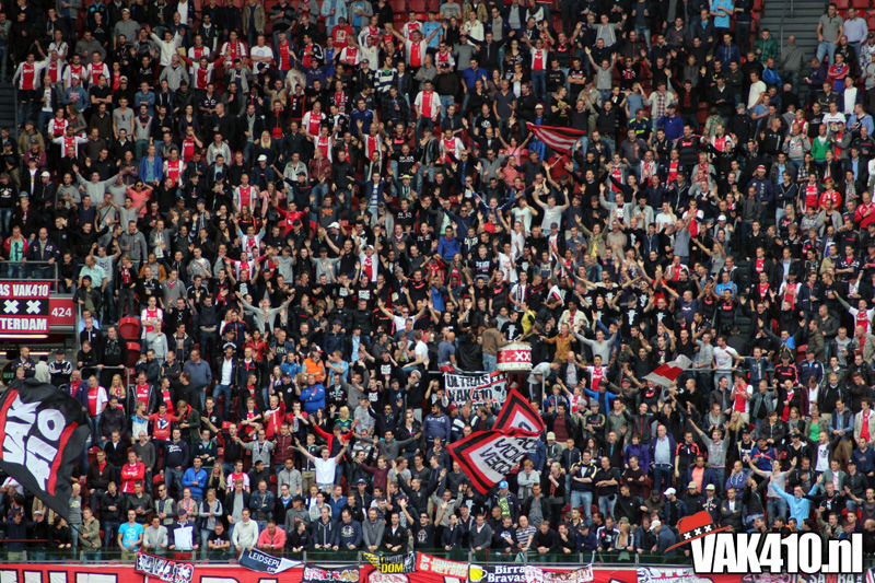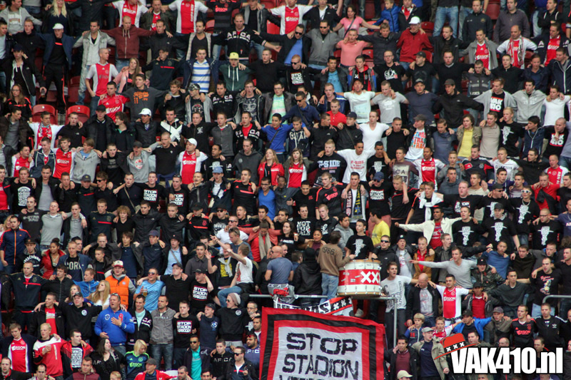 Ajax thuis tegen Utrecht. 12.30u, het blijft echt een kut tijd! Toch slecht dat er daarom weer veel mensen voor gekozen hebben om niet naar de Arena te komen, maar in hun nest te blijven liggen! Ajax heeft al een tijdje niet gewonnen van de ploeg uit de domstad, maar van echte wedstrijdspanning is niet veel te merken. Vergeleken met de wedstrijd tegen AC Milan van afgelopen dinsdag hangt er dan ook een gelaten sfeer in de Arena.