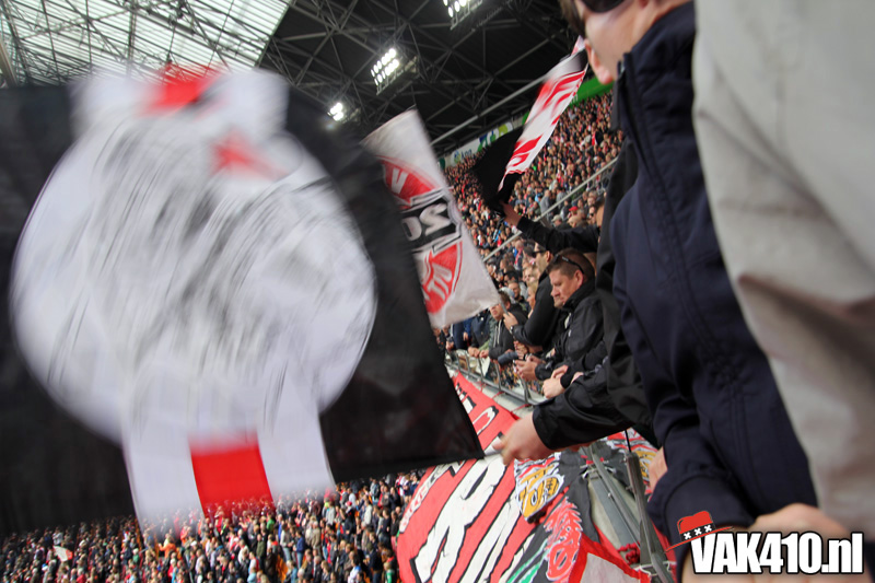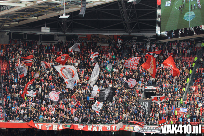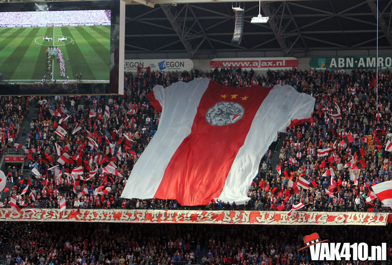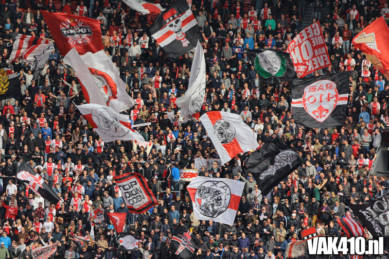 Ajax heeft het vandaag alleen niet in eigen handen. Nummer twee Feyenoord speelt uit bij PSV en moet dan niet verder komen dan een gelijkspel. Ajax speelt opnieuw geen beste partij maar wint verdiend van ADO Den Haag. In Eindhoven wordt PSV verslagen dus weten wij tijdens de wedstrijd al dat het officiƫle feestje nog twee weken wordt uitgesteld. Maakt ons niet uit, officieus kampioen is voor ons ook een reden om even goed te gaan zuipen op de Wallen.